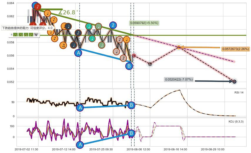 ➢ 预测:2019-08-06 13:00,【后劲十足】稳定目前下跌趋势的前提下,预测价格:0.0547080
