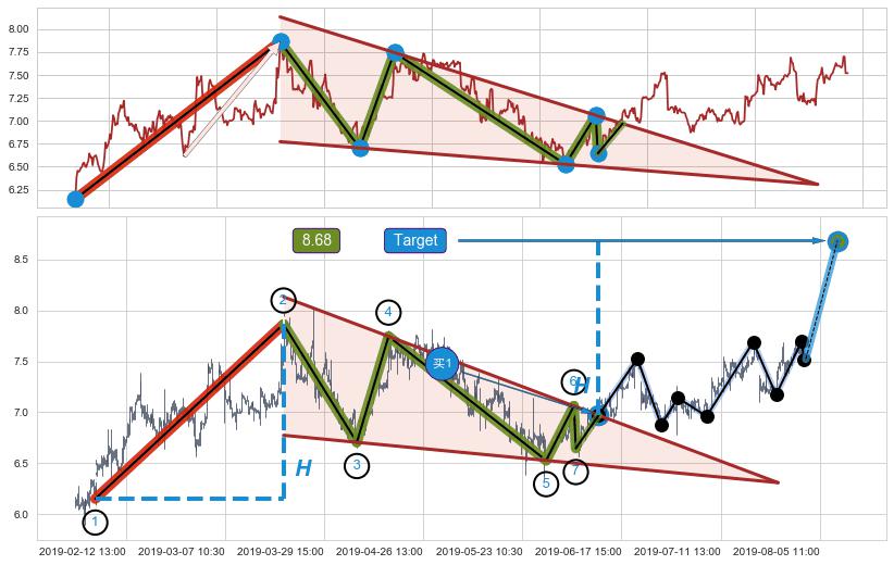 ➣ D点拟合预测价格8.27,距离最后交易收盘价格7.52相差 +9.94%