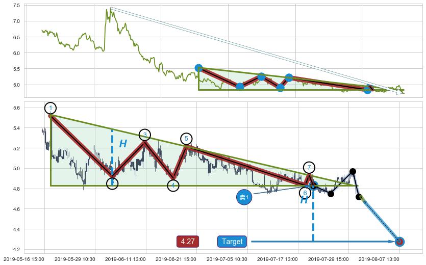 ➣ 最小中继整理跌幅→𝐇: 0.40900 (上平行阻力线与下平行支撑线的垂直距离)