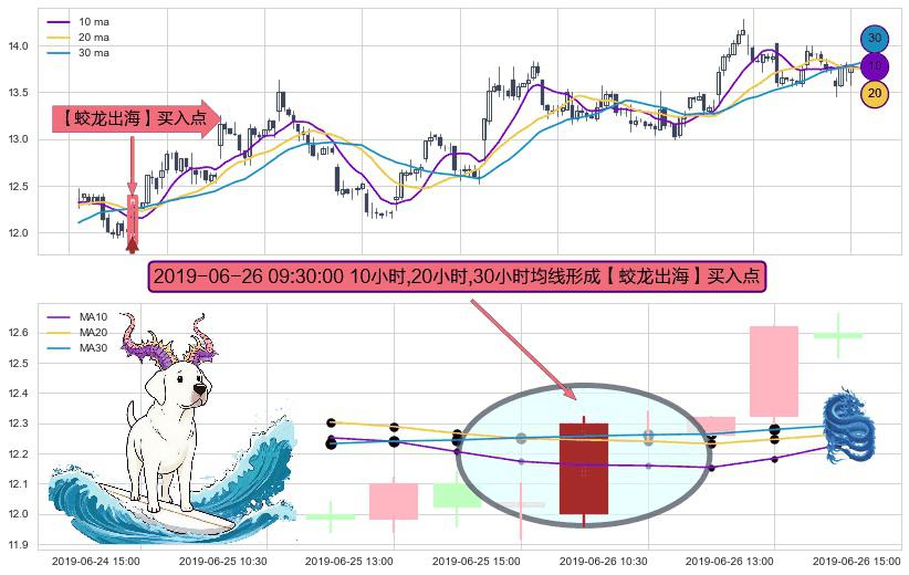 ⚄ 【蛟龙出海】买入点长时间对 熊 市转 牛 市进行确认,且均线烘托价格走势,但信号发出时间较长,属于【迟滞】看多买入信号