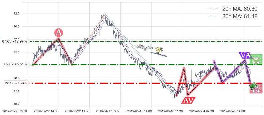 ♘ 阻力价格位62.62,可信任强度66.92%,距离最后交易2019-07-31 15:00形成的收盘价格59.35相差 +5.51%