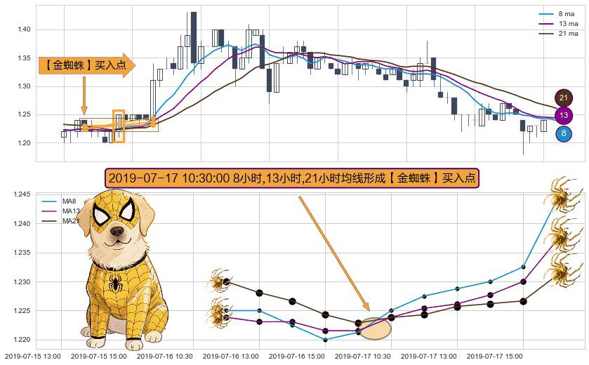 ⚀ 2019-07-17 10:30:00小时显现 8小时-13小时-21小时均线 【金蜘蛛】买入点 看多信号,后市看涨,买入