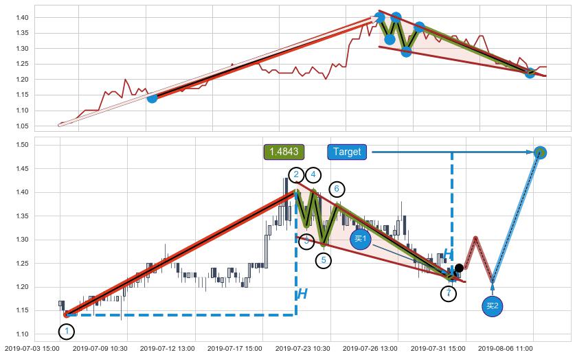 ➣ AI预测: 假定反转启动后, 第❶目标位置(08-22:12, 1.2115)