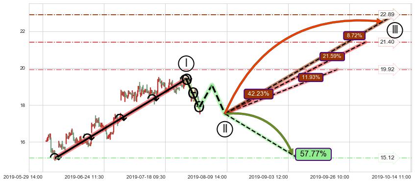 ➢ 循环浪继续向上【最高】位置(10-14:11, 22.89),匹配聚类样本比例20.64%, 可能性概率8.72%