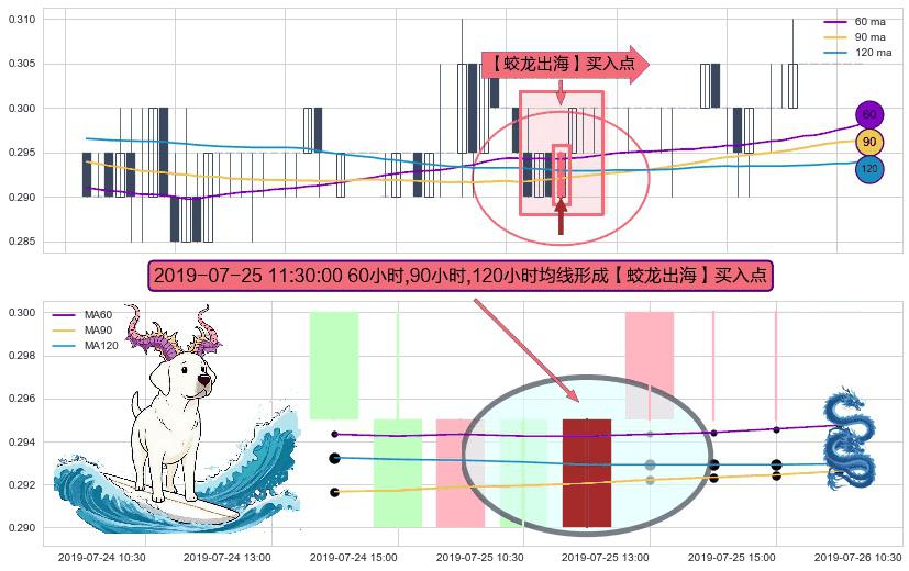 形态多维评估: ⚀ 2019-07-25 11:30:00小时显现 60小时-90小时-120小时均线 【蛟龙出海】买入点 看多信号,后市看涨,买入