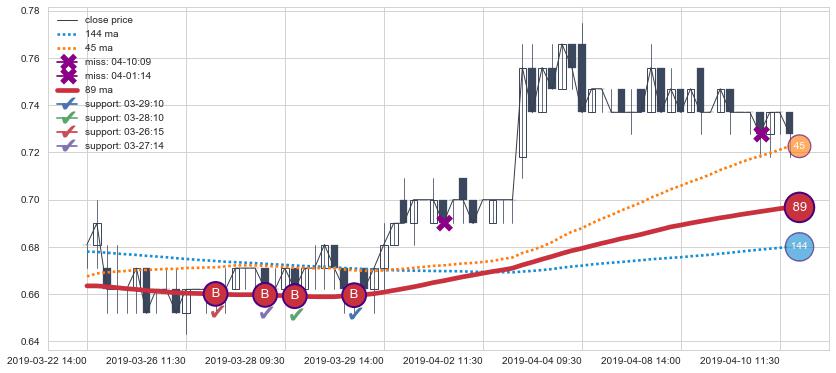 上涨趋势03-22 14:00-04-10 13:00,均线89确认关键支撑4处