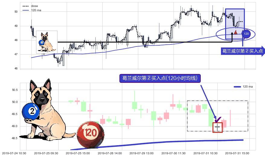 ⚀ 2019-07-31 10:30:00-小时显现 葛兰威尔均线 120小时均线 第②买入点 上升趋势的中继信号,后市看涨,买进信号