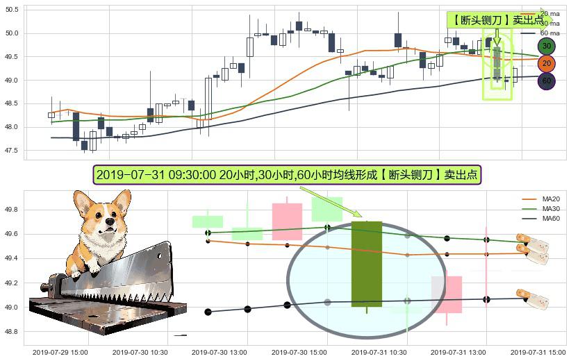 ⚀ 2019-07-31 09:30:00小时显现 20小时-30小时-60小时均线 【断头铡刀】卖出点 看空信号,后市看跌,卖出