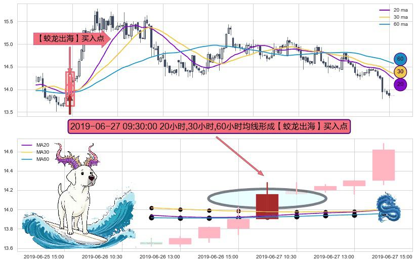⚀ 2019-06-27 09:30:00小时显现 20小时-30小时-60小时均线 【蛟龙出海】买入点 看多信号,后市看涨,买入