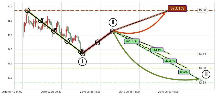 ➣ 预测:2019-08-13 10:00,【继续下探】稳定目前下跌趋势的前提下,预测价格:13.62