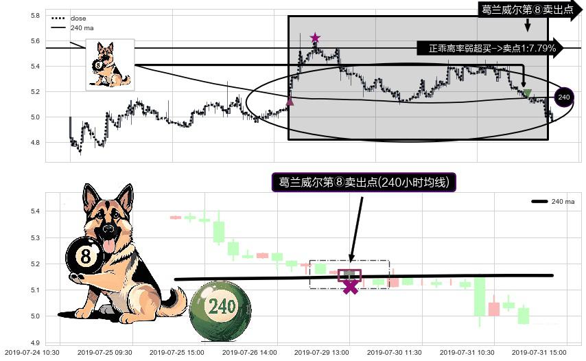 形态多维评估: ⚀ 2019-07-29 13:00:00-小时显现 葛兰威尔均线 240小时均线 第⑧卖出点 下降趋势的中继信号,后市看跌,卖出信号