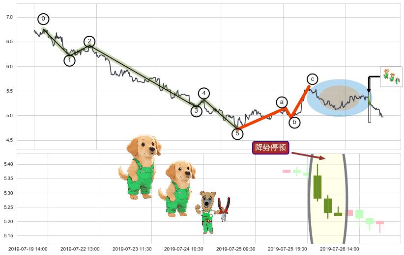 ➢ 最后的下跌趋势2019-03-15 15:00至2019-06-12 11:30:存在突破迹象,后续小反弹或者反转上涨