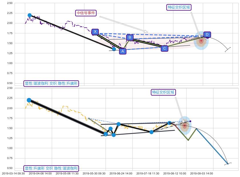从2019-07-23 15:00至2019-07-31 15:00,共包含37个小时,阶段股价上涨5.44%,阶段股价变动位移路程比: 1 : 4