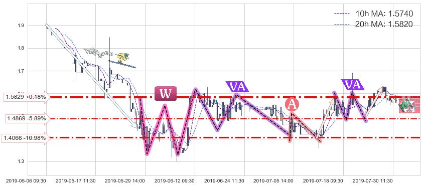 ♘ 支撑价格位1.4869,可信任强度52.35%,距离最后交易2019-07-31 15:00形成的收盘价格1.5800相差 -5.89%