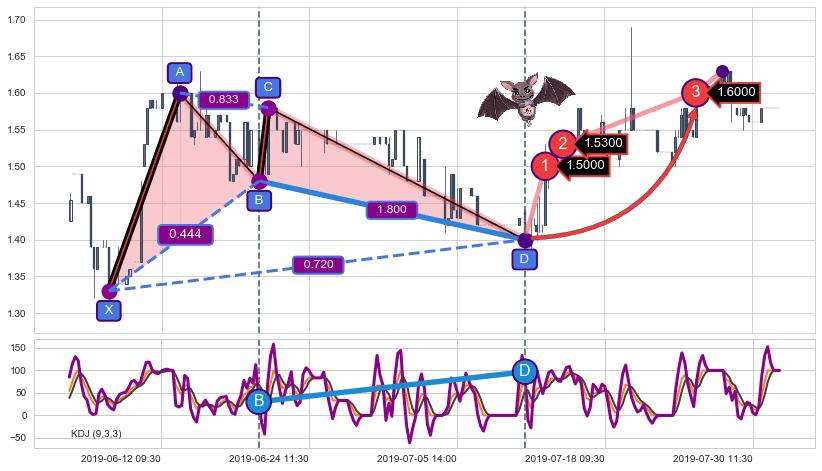 ➣ 已达成看涨【蝙蝠】形态全部的预期目标