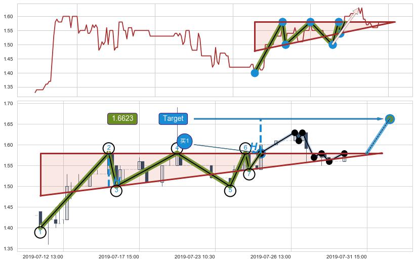 ➢ 【买1】: 激进型 买点 →(07-19:13: 1.5582 )形成突破上升【对称】三角形整理【整理】形态