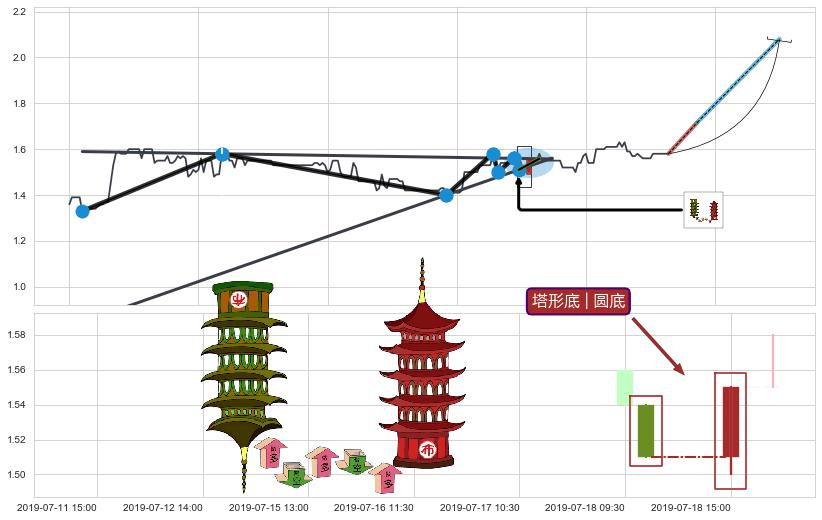 | 7 🅚:单针探底(定海神针) ➕ 📐:上升对称三角整理向上突破击穿阻力位, 猜想持续拉升上涨,被突破的阻力位已变为支撑位 ☞ 看多信号 ⇥ 【🅚线】交织【图形】⇥ 综合量化分数: 51 | > |