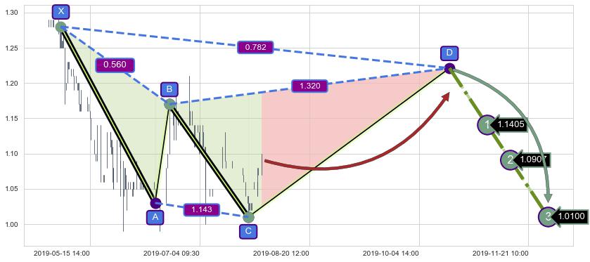 ➣ D点拟合预测价格1.2211,距离最后交易收盘价格1.0900相差 +12.03%