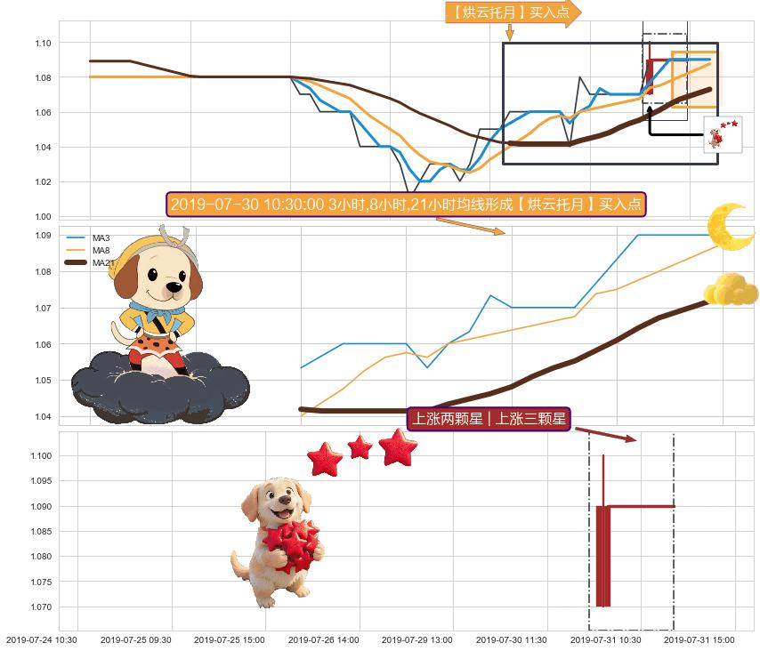从2019-07-29 13:00至2019-07-31 15:00,共包含15个小时,阶段股价上涨4.79%,阶段股价变动位移路程比: 1 : 1.4
