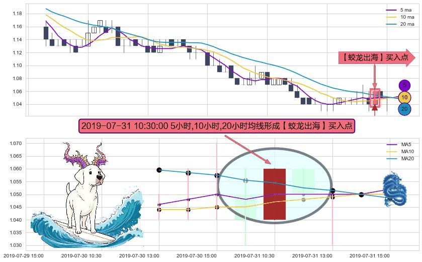 形态多维评估: ⚀ 2019-07-31 10:30:00小时显现 5小时-10小时-20小时均线 【蛟龙出海】买入点 看多信号,后市看涨,买入