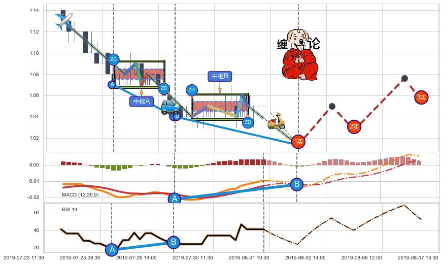 ➣ 【中枢A】:07-25:14-07-26:11,中枢由4笔构成,共5交易小时, ZG=1.0800, ZD=1.0800