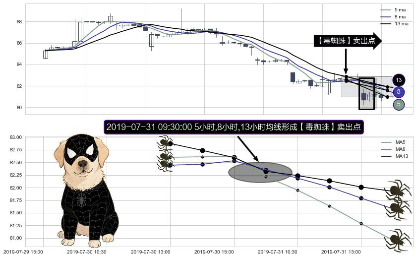 ⚀ 2019-07-31 09:30:00小时显现 5小时-8小时-13小时均线 【毒蜘蛛】卖出点 看空信号,后市看跌,卖出