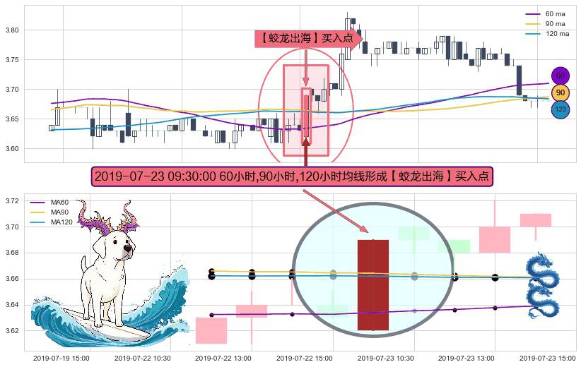 ⚀ 2019-07-23 09:30:00小时显现 60小时-90小时-120小时均线 【蛟龙出海】买入点 看多信号,后市看涨,买入