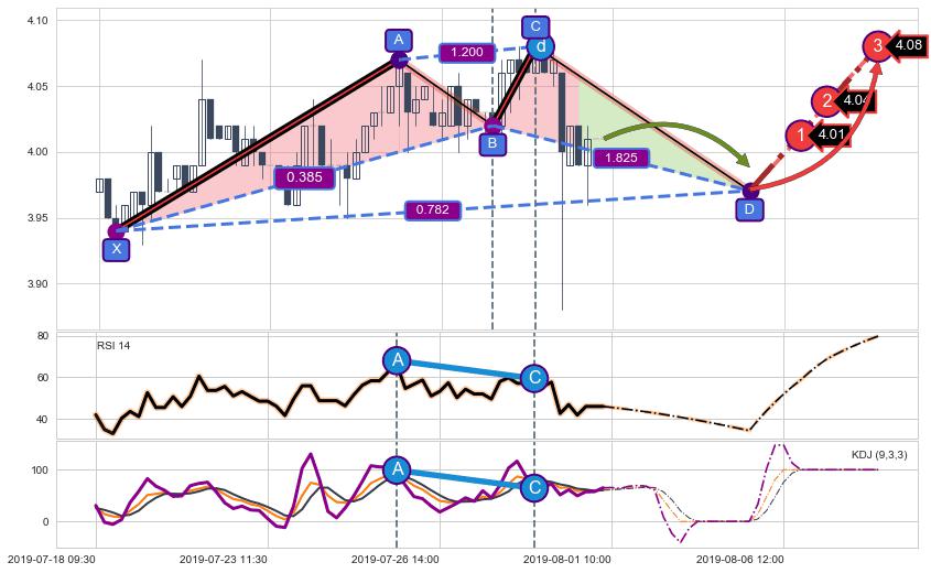 ➣ 未完成【赛福】形态起点X: 07-18:11, 已到达C点: 07-30:13, 预测最终D点: 08-05:14, 共72交易小时