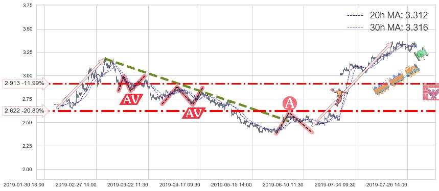 ♘ 支撑价格位2.913,可信任强度66.65%,距离最后交易2019-07-31 15:00形成的收盘价格3.310相差 -11.99%