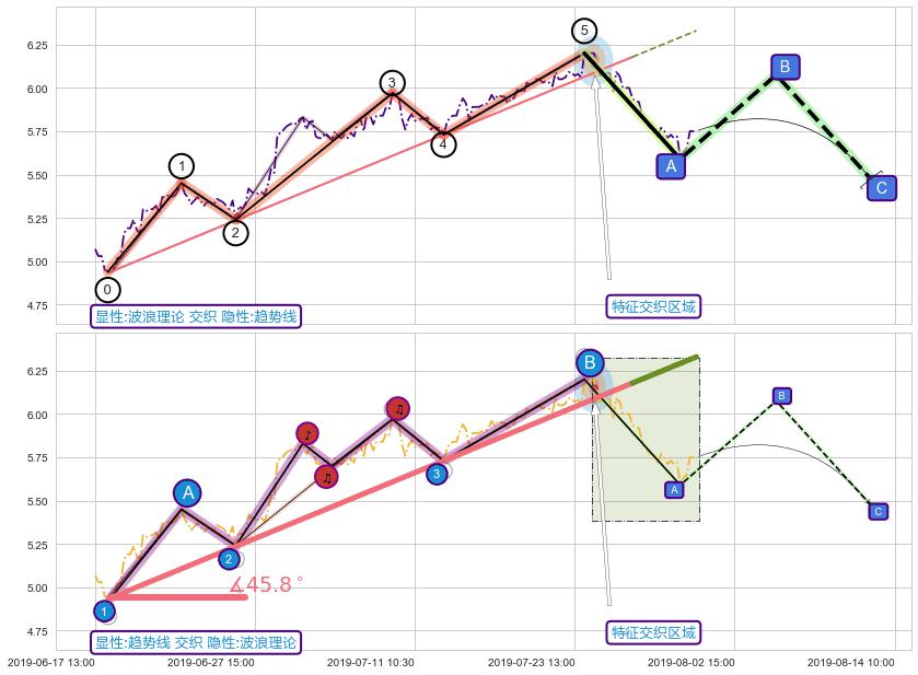 从2019-06-18 10:30至2019-07-26 13:00,共包含165个小时,阶段股价上涨19.02%,阶段股价变动位移路程比: 1 : 4,上涨趋势角度: 45.8