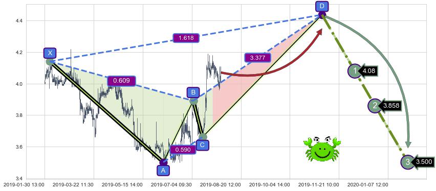 ➢ 距离预测D点位置有足够的上涨空间, 与看跌【螃蟹】形态相反,实际方向【看涨】