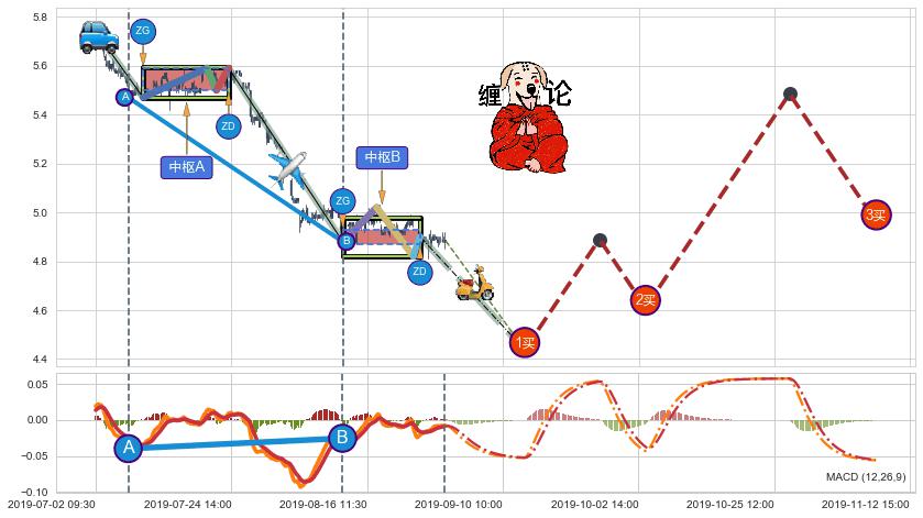➢ 缠论价格B点比A点低 ⤵,【MACD】指标B点比A点高 ⤴️