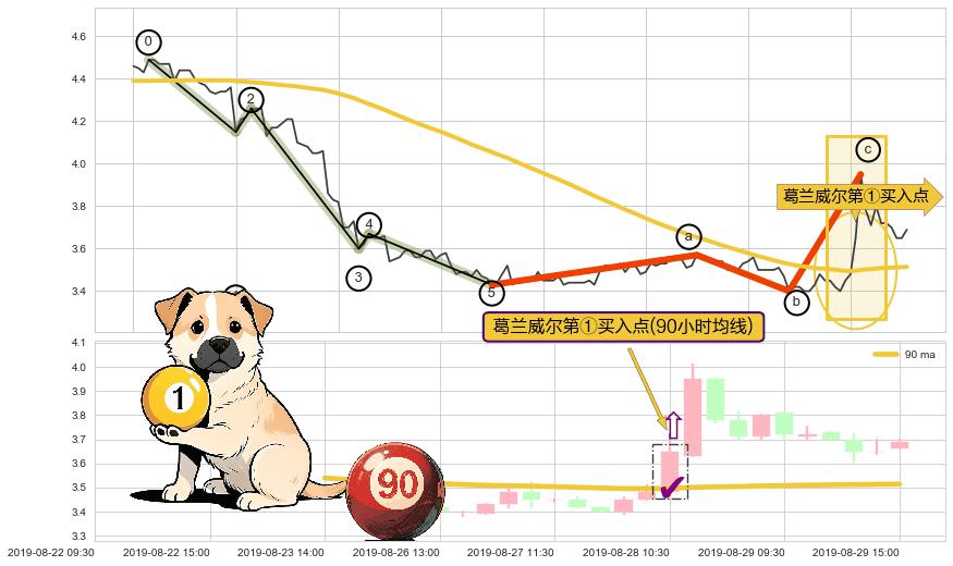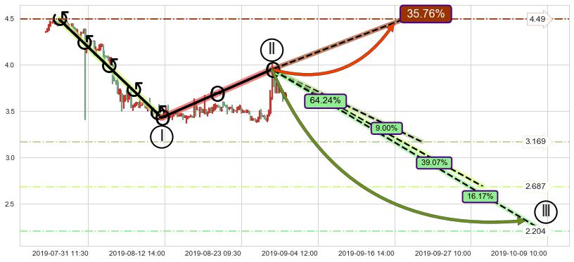 2019-08-19: 第一支撑位3.506有效抑制了下跌浪,成功阻止了价格的继续下跌。