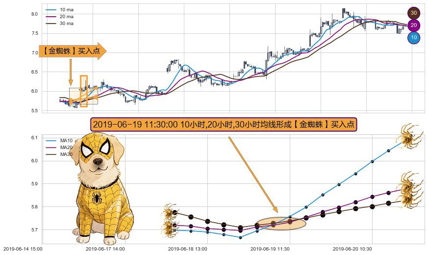 ⚀ 2019-06-19 11:30:00小时显现 10小时-20小时-30小时均线 【金蜘蛛】买入点 看多信号,后市看涨,买入