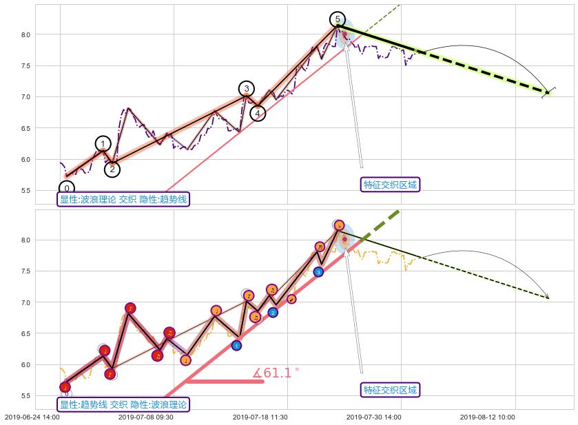 从2019-07-19 11:30至2019-07-30 13:00,共包含44个小时,阶段股价上涨3.96%,阶段股价变动位移路程比: 1 : 8