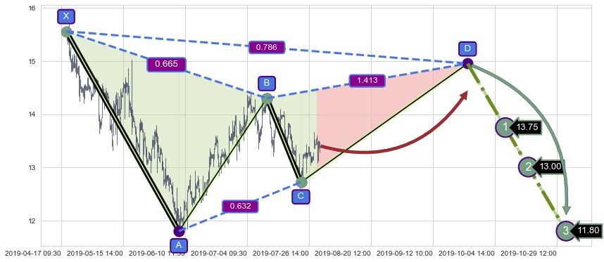 ➣ D点拟合预测价格14.95,距离最后交易收盘价格13.40相差 +11.58%