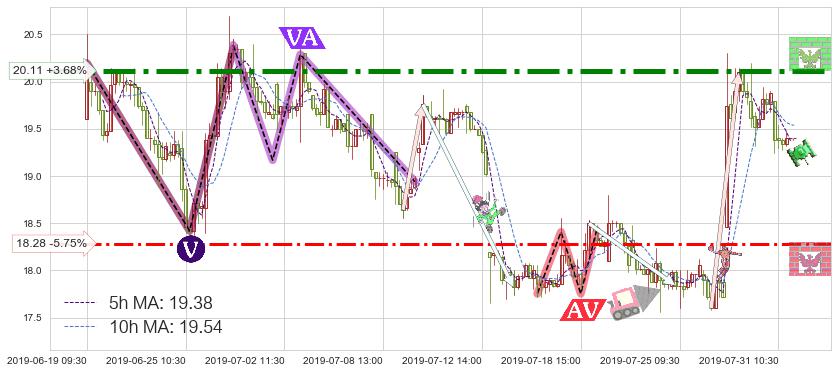 ♘ 阻力价格位20.11,可信任强度85.47%,距离最后交易2019-07-31 15:00形成的收盘价格19.40相差 +3.68%