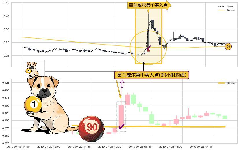 ⚀ 2019-07-24 10:30:00-小时显现 葛兰威尔均线 90小时均线 第买①入点 走势反转见底信号,后市看涨,买进信号