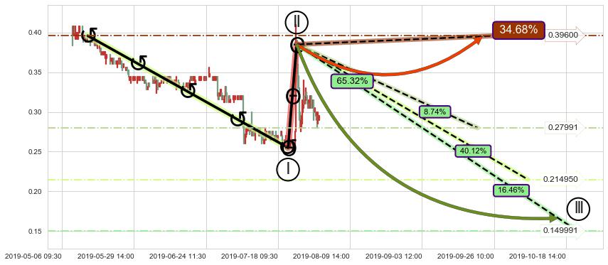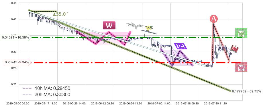 ♘ 阻力价格位0.34391,可信任强度71.14%,距离最后交易2019-07-31 15:00形成的收盘价格0.29500相差 +16.58%