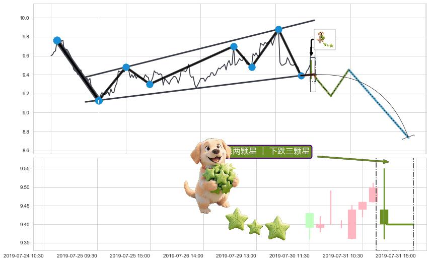 ➢ 【仅预测突破】最后价格:9.40与预测突破价格:9.36→【空间临近】后续最小【整理】第一目标价格→(08-15:12: 8.73 )