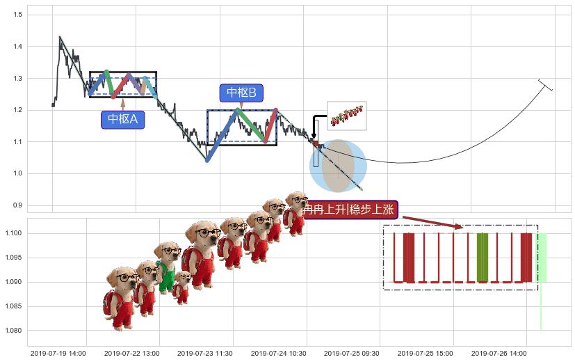 ➢ 【中枢B】:05-23:14-07-04:09,中枢由4笔构成,共165交易小时, ZG=1.2000, ZD=1.1000