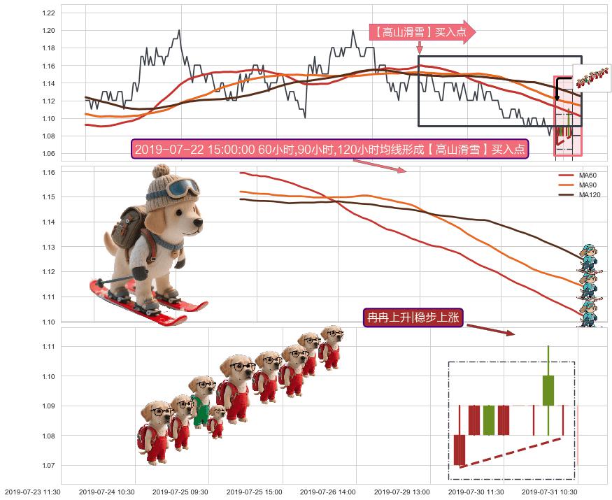 | 2 🅚:两红夹一黑 ➕ 🎢:【高山滑雪】买入点均线组合买入点信号形成后,猜想后续下行结束,持续反弹上涨(均值回复) ☞ 看多信号 ⇥ 【均线】交织【🅚线】⇥ 综合量化分数: 58 | > |