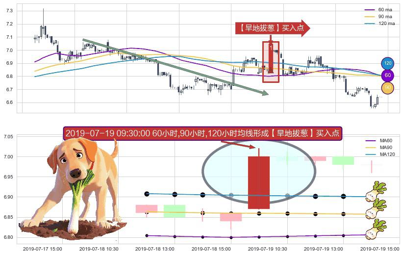 ⚀ 2019-07-19 09:30:00小时显现 60小时-90小时-120小时均线 【旱地拔葱】买入点 看多信号,后市看涨,买入