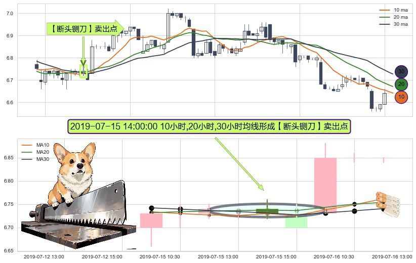 ⚀ 2019-07-15 14:00:00小时显现 10小时-20小时-30小时均线 【断头铡刀】卖出点 看空信号,后市看跌,卖出