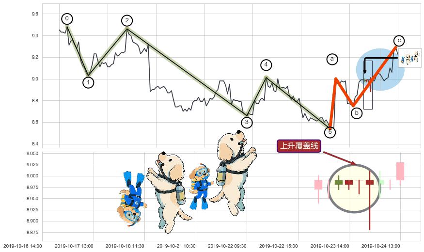 🍖 长线趋势跟踪组合短线均值回复[强支撑信号]2019-10-18 13:00-2019-10-28 15:00上升趋势依然成立(上涨趋势跟踪依然可行),短线价格略微下行回调(均值回复猜想),即将接近趋势提供的未破位的支撑价格:9.14。