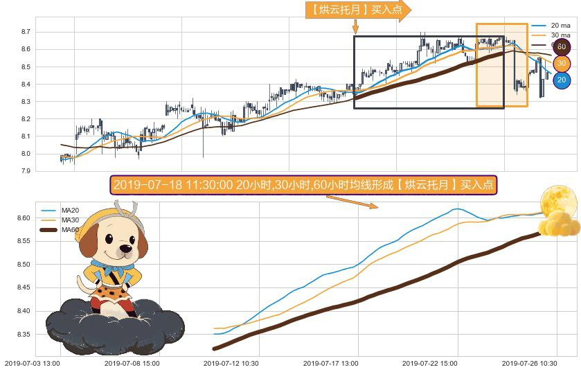 ⚀ 2019-07-10 14:00:00小时-2019-07-26 09:30:00小时显现 20小时-30小时-60小时均线 【烘云托月】买入点 看多信号,后市看涨,买入