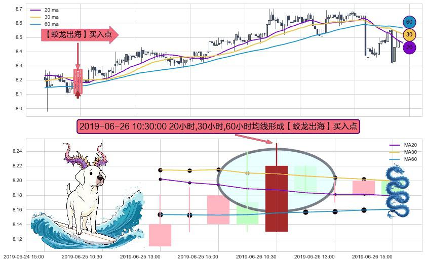 ⚀ 2019-06-26 10:30:00小时显现 20小时-30小时-60小时均线 【蛟龙出海】买入点 看多信号,后市看涨,买入