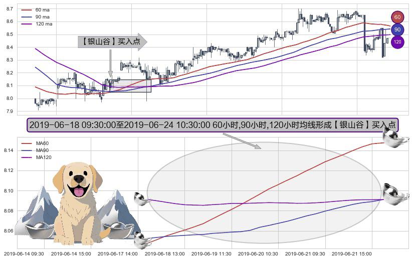 ⚀ 2019-06-18 10:30:00-小时至2019-06-24 10:30:00-小时显现 60小时-90小时-120小时均线 【银山谷】买入点 看多信号,后市看涨,买入