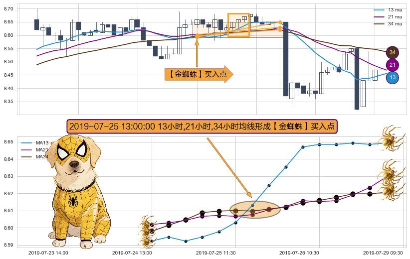 ⚀ 2019-07-25 13:00:00小时显现 13小时-21小时-34小时均线 【金蜘蛛】买入点 看多信号,后市看涨,买入
