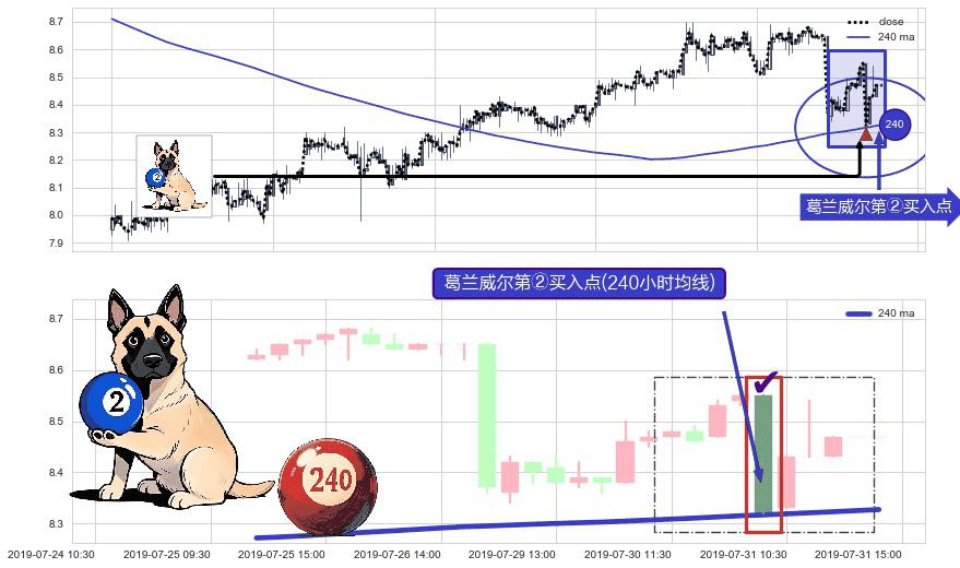 ⚀ 2019-07-31 09:30:00-小时显现 葛兰威尔均线 240小时均线 第②买入点 上升趋势的中继信号,后市看涨,买进信号